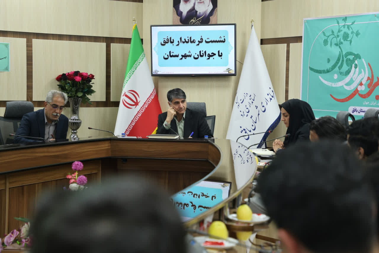 به مناسبت هفته جوان، رضا فلاح فرماندار بافق در نشستی صمیمی با جمعی از جوانان شهرستان، با تأکید بر لزوم تکیه بر ظرفیتهای داخلی، نقشآفرینی جوانان در حوزههای فرهنگی، اقتصادی و فناوریهای نوین را ضروری دانست و بر استفاده از ایدهها و توان فکری نسل جوان در مسیر توسعه همهجانبه بافق تأکید کرد.